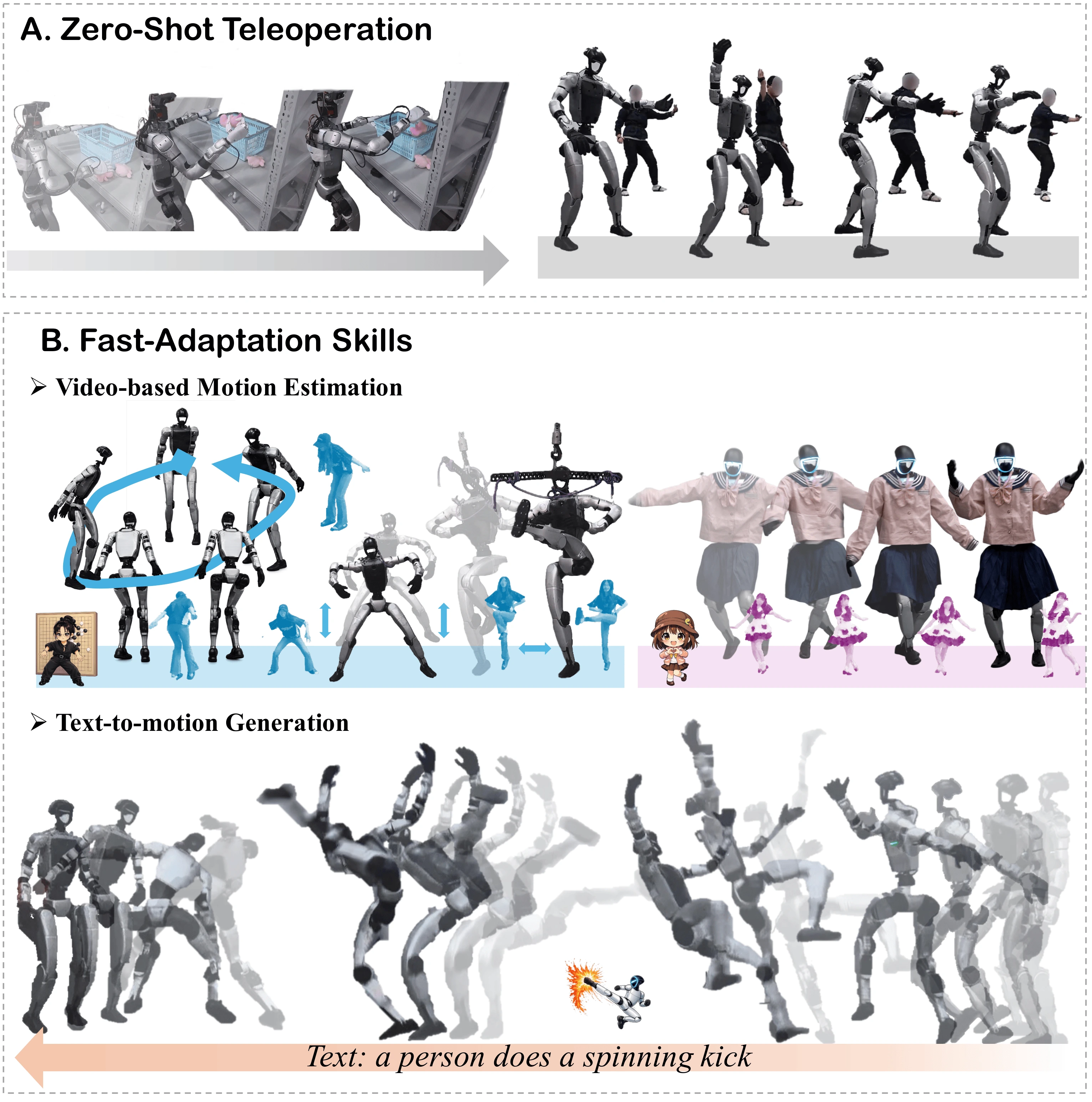 FAST enables zero-shot high-dynamic motion tracking and real-time teleoperation with strong robustness and balance beyond simulation. For low-quality or out-of-distribution motion references, FAST further supports lightweight residual adaptation for rapid and stable specialization.